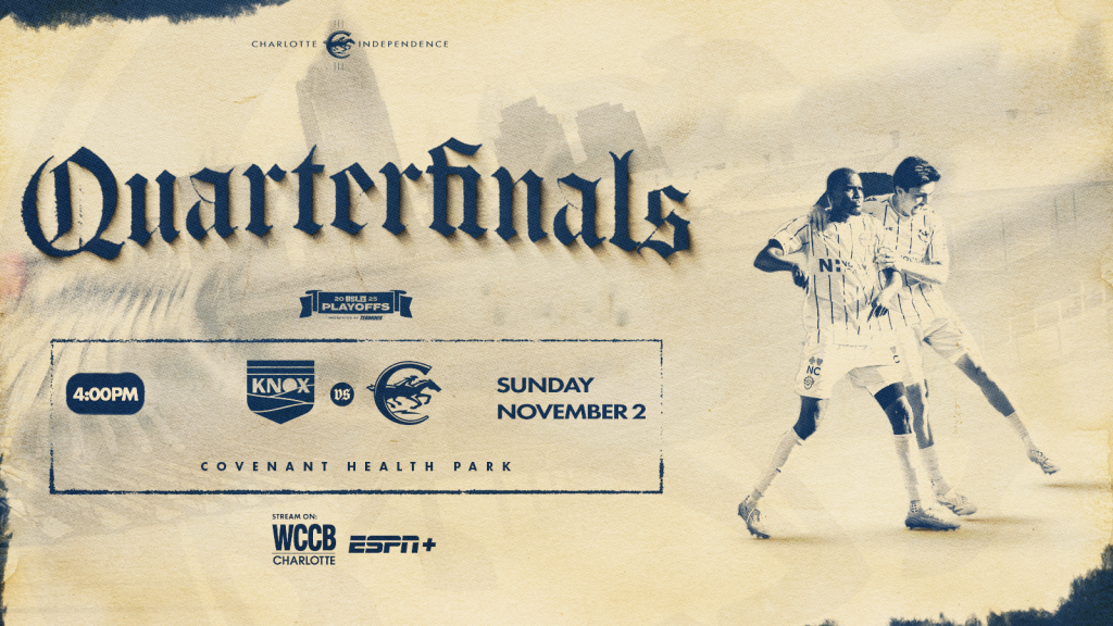 CHARLOTTE, NC (October 26, 2025) – USL League One announced today that the league quarterfinal between the Charlotte Independence and One Knoxville SC will take place on Sunday, November 2 at 4:00 pm.